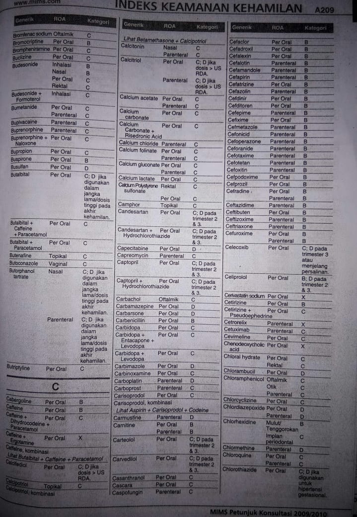 3) Daftar Lengkap Indeks Keamanan Penggunaan Obat Dalam Kehamilan